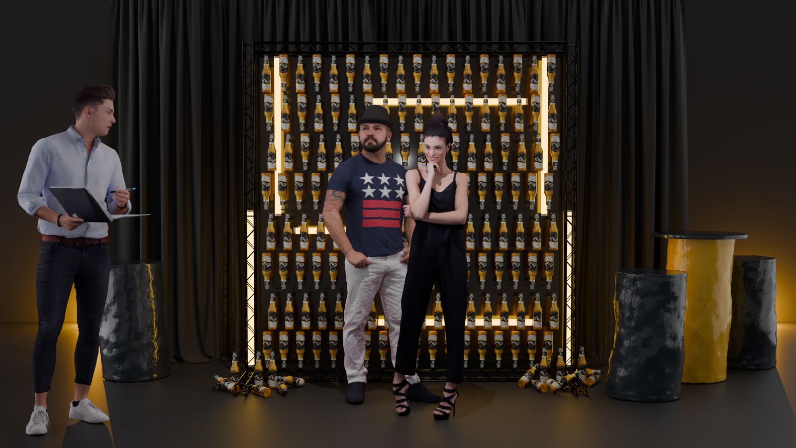 Naše nedávná spolupráce pro pivovar PROUD. Vytvořili jsme speciální fotostěnu na míru, která se stala nejen skvělou dekorací, ale také živým propagačním prvkem pro klientův brand. Každý detail byl promyšlen s ohledem na potřeby klienta a s kombinací LED světelných trubic a pivních lahví jsme dokázali vytvořit funkční dekoraci v prostoru.